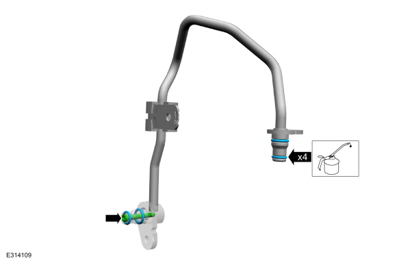 Снимите и выбросьте уплотнительные кольца трубки охлаждающей жидкости турбонагнетателя.