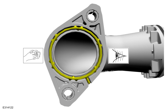 Если переходник колена турбонагнетателя был снят, осмотрите, очистите и при необходимости замените прокладку.