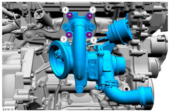 Ford Escape: Заправка топливом и органы управления — Турбокомпрессор — 1,5 л EcoBoost (132 кВт/180 л. с.) — I3 (Y1) / Снятие и установка — Турбокомпрессор