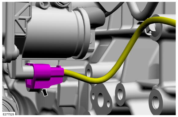 Снимите и выбросьте уплотнительное кольцо трубки охлаждающей жидкости турбонагнетателя.УВЕДОМЛЕНИЕ: Не используйте металлическую щетку, повреждение области уплотнения приведет к утечке.