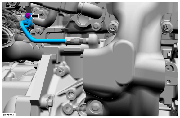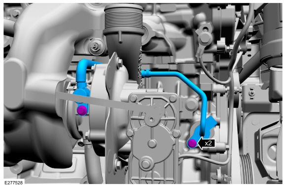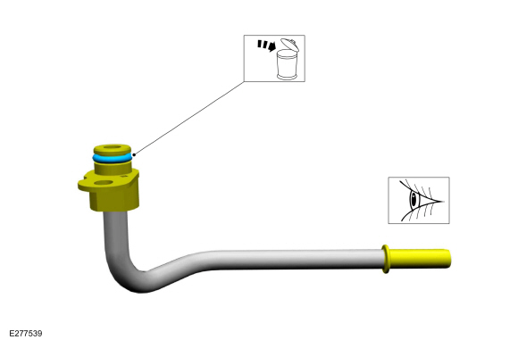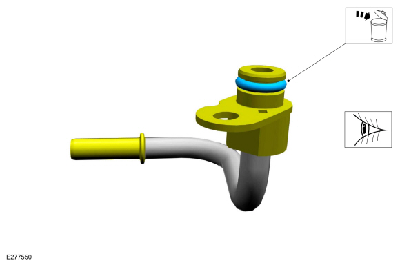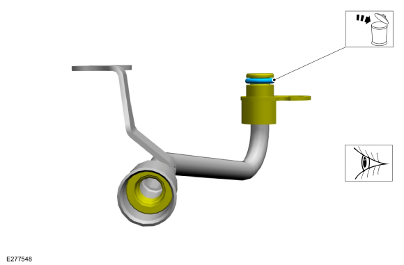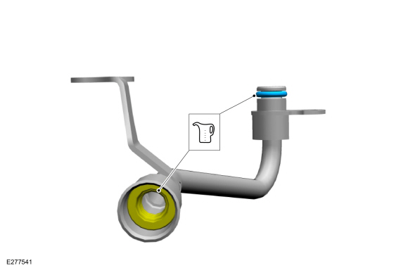Если снято, установите новую охлаждающую жидкость турбонагнетателя. уплотнительное кольцо трубки. Смажьте уплотнительное кольцо трубки охлаждающей жидкости турбонагнетателя. с чистой охлаждающей жидкостью двигателя.