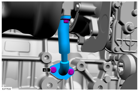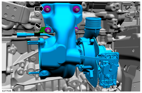 ПРИМЕЧАНИЕ: Кронштейн трубки охлаждающей жидкости удерживается левой нижней шпилькой и гайкой турбонагнетателя.
