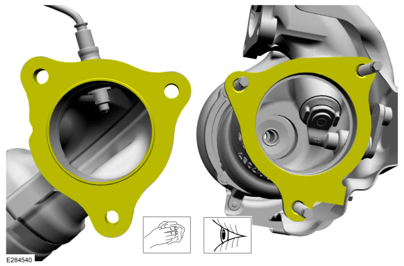 Для очистки используйте очиститель тормозов и нейлоновую щетку. Очистите уплотнительные поверхности трубки охлаждающей жидкости турбонагнетателя. Осмотрите уплотнительные поверхности на наличие мусора или повреждений, убедитесь, что удерживающая скоба не погнут, проверьте прямоугольность области уплотнительного кольца. Установить новый компоненты при необходимости.