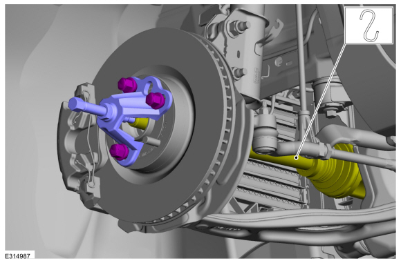 УВЕДОМЛЕНИЕ: Не используйте рычажное устройство, чтобы открыть щель в поворотный кулак, чтобы отделить нижний шаровой шарнир от узла поворотного кулака. Может произойти повреждение узла поворотного кулака.