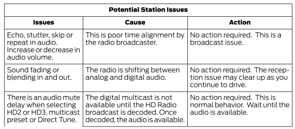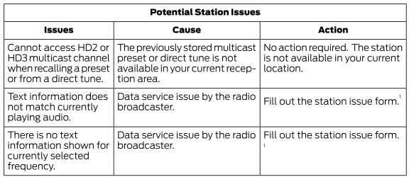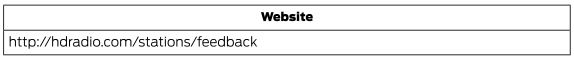 Чтобы предоставить наилучшие впечатления, используйте контактную форму, чтобы сообщить любые проблемы со станцией, обнаруженные при прослушивании радиостанции, транслируемой с помощью HD Radio технологии. Независимые лица владеют и управляют каждой станцией. Эти станции отвечает за точность всех аудиопотоков и полей данных.
