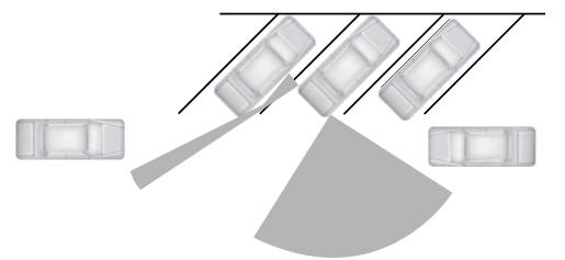 Покрытие зоны также уменьшается при парковке под узкими углами. Датчик на левая сторона в основном загорожена, и покрытие зоны на этой стороне сильно уменьшено.