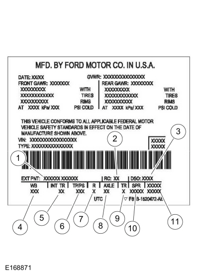 VIN представляет собой 17-значную комбинацию букв и цифр. VIN выбит на металлическом язычке, приклепанном к приборной панели в верхнем левом углу приборной панели. VIN также указан на этикетке VC. Если табличка с номером VIN требует замены, авторизованные дилеры должны обратиться в свое региональное представительство.