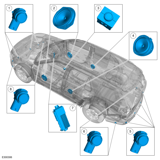 Расположение компонентов, система помощи при парковке — автомобили со звуковым сопровождением без камеры кругового обзора