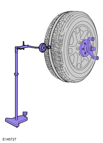 ПРИМЕЧАНИЕ: Некоторые автомобили могут демонстрировать вибрацию колес и шин, вызванную за счет чрезмерного биения. Измерения радиального биения можно выполнить с помощью циферблатный индикатор и должен измеряться вместе с колесом и шиной в сборе устанавливается на подходящий балансировочный стенд. Циферблатный индикатор должен быть установлен надежно, чтобы исключить перемещение датчика при измерении биения.
