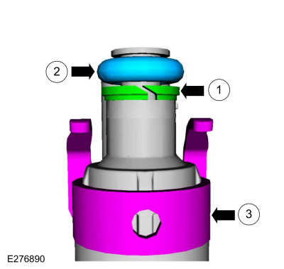 УВЕДОМЛЕНИЕ: Новые опорные кольца топливных форсунок должны быть установлен в правильной ориентации с широкой поверхностью, обращенной к напротив уплотнительных колец топливных форсунок. Неправильно установленная опора кольца могут привести к протечке топливной системы.
