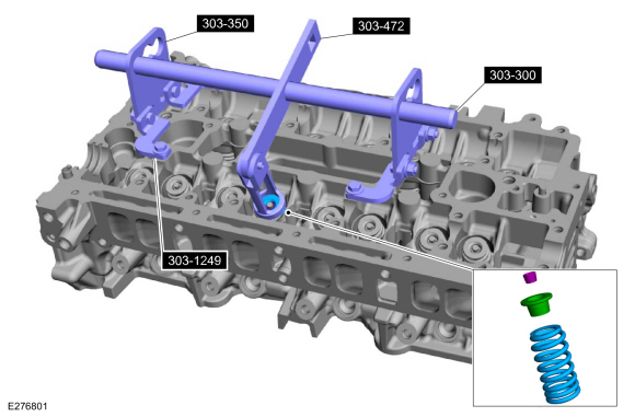 Используя специальные инструменты, установите пружину клапана, держатель пружины клапана и цангу клапана.