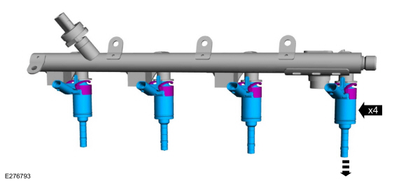 ПРИМЕЧАНИЕ: При снятии топливных рамп топливные форсунки могут остаются в топливных рампах, но обычно остаются в головке блока цилиндров и для извлечения требуется инструмент для снятия топливных форсунок.