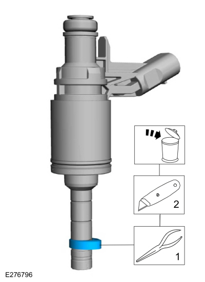 УВЕДОМЛЕНИЕ: Не пытайтесь разрезать нижнее уплотнение Teflon® без сначала оттянув его от топливной форсунки или повредить форсунку может возникнуть.