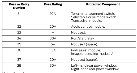 Примечание. Сила тока запасного предохранителя может варьироваться.