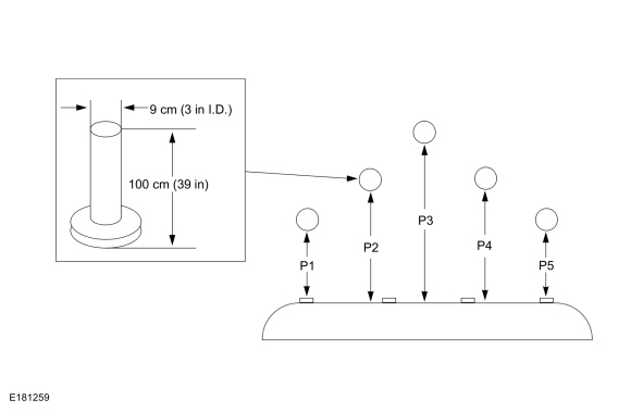Равномерно распределите тестовые объекты по бамперу, как показано на рисунке. См. технические характеристики в этом разделе.
