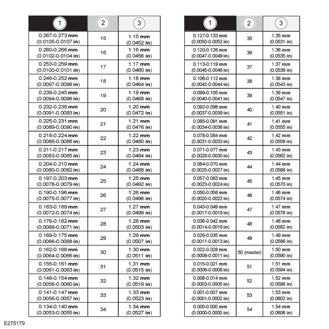 Используя измерение люфта, выберите подходящие прокладки из таблицы выбора регулировочных прокладок.