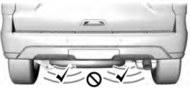 Зона обнаружения находится слева и справа от сцепного устройства, между выхлопом и фаркопом.