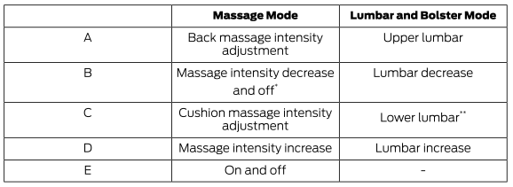 Примечание. Подождите несколько секунд, пока любой выбор не активируется. Спинка сиденья и подушкообразный массаж не могут работать одновременно.