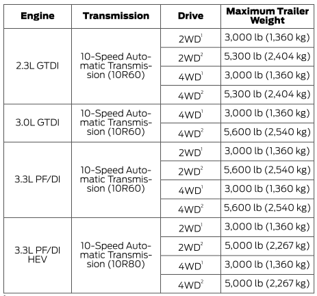 Примечание. В некоторых штатах требуются электрические тормоза для прицепов свыше указанный вес. Обязательно ознакомьтесь с государственными нормами для указанного веса. Указанный максимальный вес прицепа может быть ограничен этим указанным весом, так как электрическая система автомобиля может не включать разъем проводки, необходимый для активации электрические тормоза прицепа.
