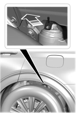 Примечание: Чтобы закрыть лючок топливного бака, нажмите на центральный задний край лючка. лючок топливного бака, а затем отпустите.