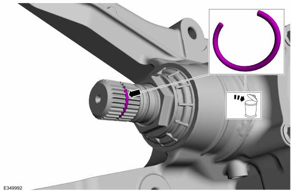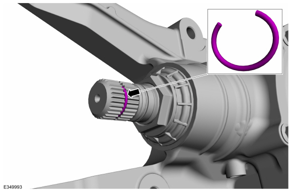 УВЕДОМЛЕНИЕ: Стопорное кольцо должно быть нагружено сбоку на шток шестерни передней оси, чтобы предотвратить деформацию стопорного кольца.