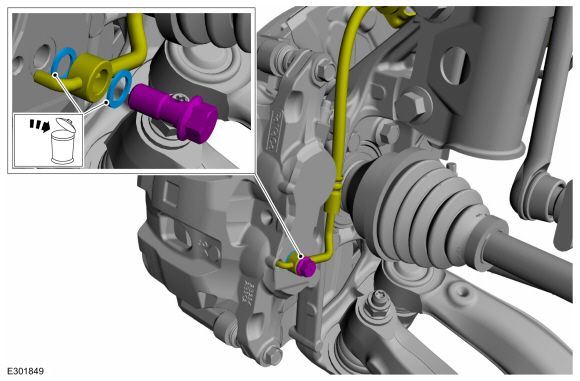 Выверните болт и отсоедините тормозной шланг. Выбросьте шайбы.