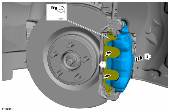 УВЕДОМЛЕНИЕ: Тормозные колодки с клеем на изоляторе только одноразовое использование. Когда тормозные колодки отделены от тормоза суппорта, необходимо установить новые тормозные колодки, чтобы предотвратить шум при торможении и содрогаться.