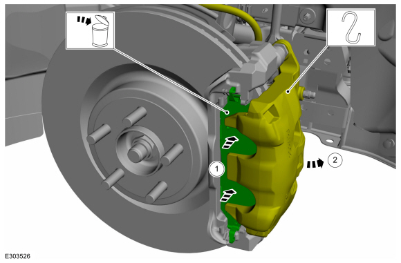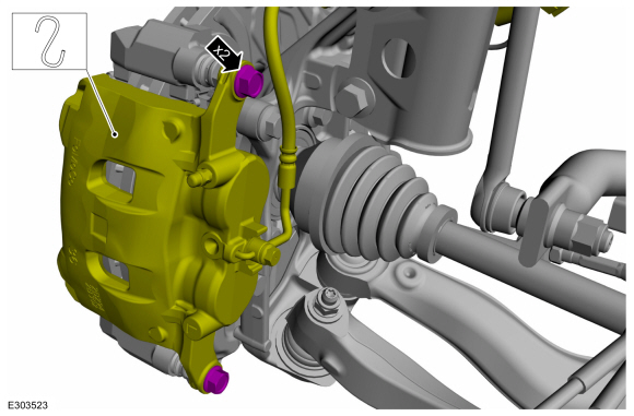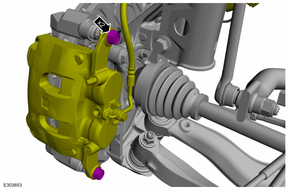 УВЕДОМЛЕНИЕ: Убедитесь, что тормозной шланг не перекручен при установка тормозного суппорта или повреждение гибкого тормозного шланга может происходить.