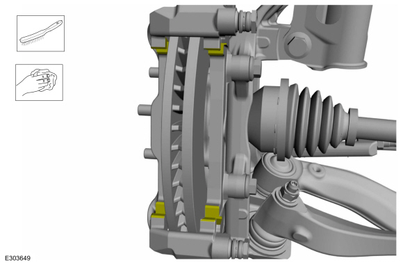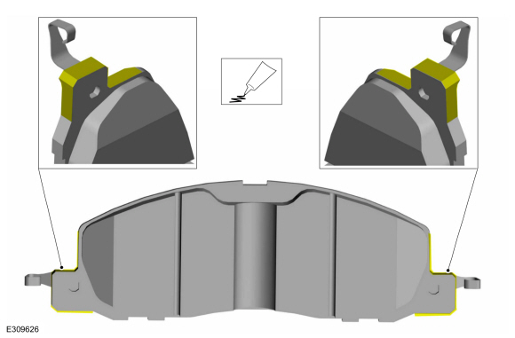 УВЕДОМЛЕНИЕ: Тормозные колодки с клеем на изоляторе только одноразовое использование. Когда тормозные колодки отделены от тормоза суппорта, необходимо установить новые тормозные колодки, чтобы предотвратить шум при торможении и содрогаться.