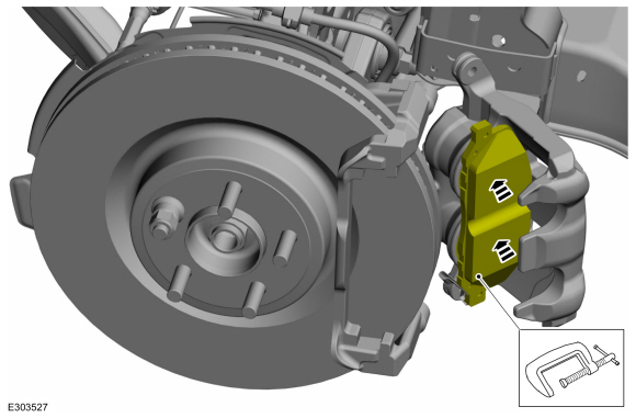 ПРИМЕЧАНИЕ: Для автомобилей, оснащенных клеем на изоляторе внешней тормозной колодки, утилизируйте тормозные колодки.