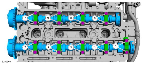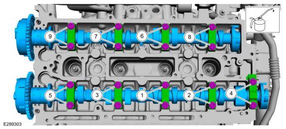 УВЕДОМЛЕНИЕ: Несоблюдение процедуры затяжки распределительных валов может привести к повреждению распределительных валов.