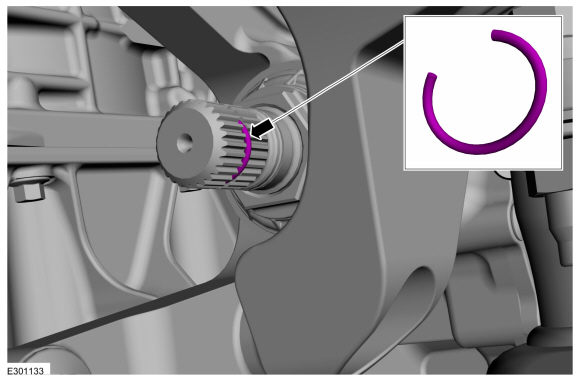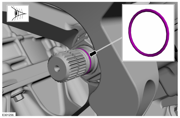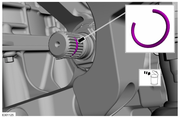 УВЕДОМЛЕНИЕ: Стопорное кольцо должно быть нагружено сбоку на шток шестерни передней оси, чтобы предотвратить деформацию стопорного кольца.
