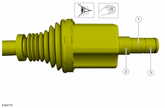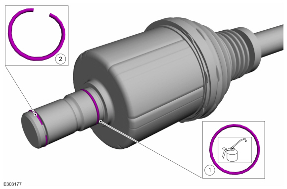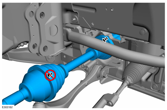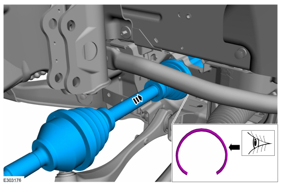 ПРИМЕЧАНИЕ: Потяните за внутренний ШРУС, чтобы убедиться, что стопорное кольцо полуоси установлено правильно.