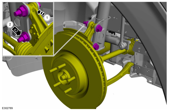УВЕДОМЛЕНИЕ: Крепления подвески являются важными деталями, влияющими на работоспособность жизненно важных узлов и систем. Выход из строя этих креплений может привести к значительным расходам на обслуживание. Используйте одинаковые или эквивалентные детали, если замена необходима. Не используйте запасную часть меньшего качество или альтернативный дизайн. Затяните крепления, как указано.