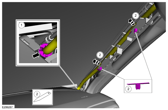 Освободите фиксаторы жгута проводов обивки потолка.