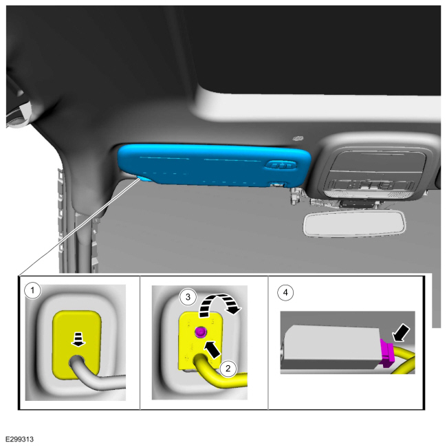 Отсоедините электрический разъем солнцезащитного козырька.