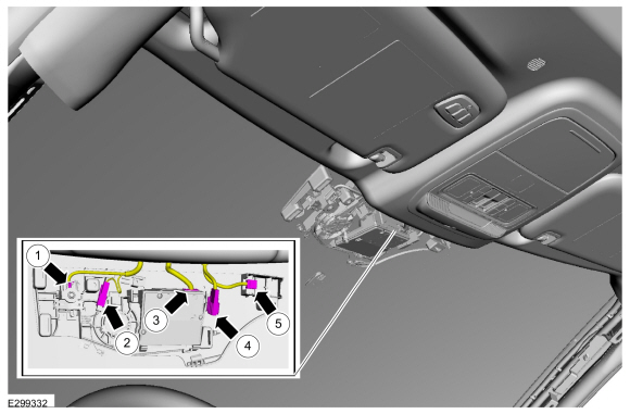 Отсоедините электрические разъемы жгута проводов обивки потолка.