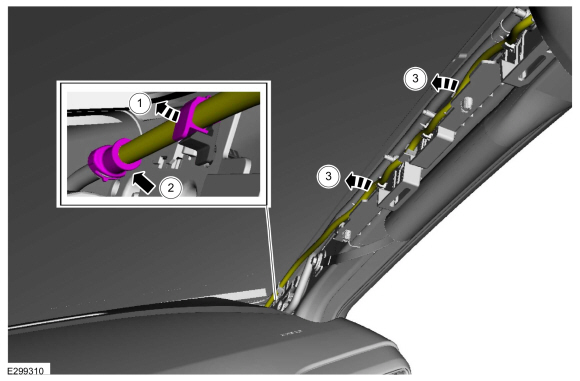 Отсоедините электрический разъем жгута проводов обивки потолка.