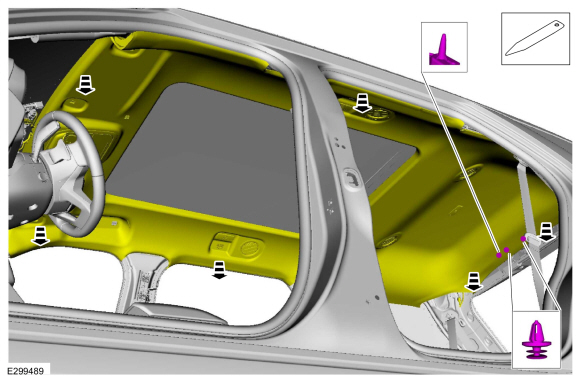 Ford Explorer: Внутренняя отделка и украшения / Снятие и установка — Обшивка потолка — Опускание