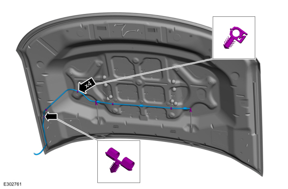 Снимите фиксаторы штифтового типа и изоляцию капота.