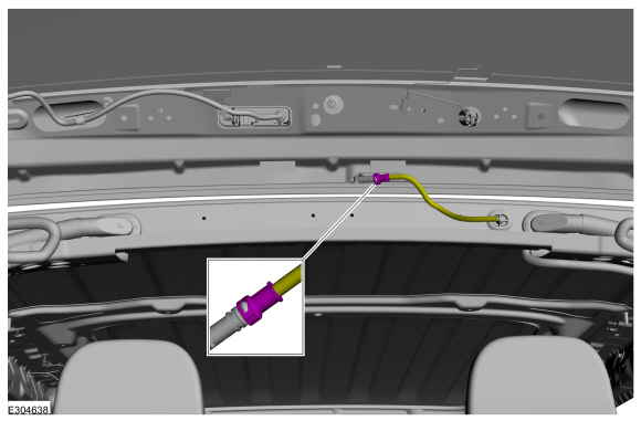 Отсоедините разъем шланга омывателя заднего стеклоочистителя.