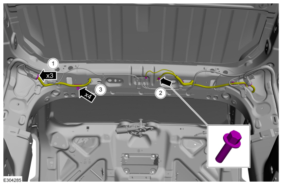 Отсоедините фиксаторы жгута проводов и проложите его через дверь багажного отделения.