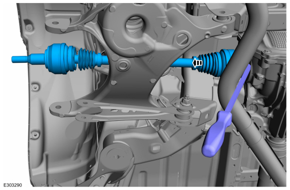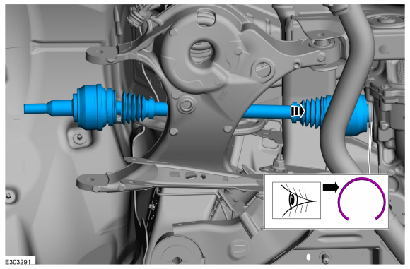 УВЕДОМЛЕНИЕ: Никогда не используйте полуось в сборе в качестве рычага для позиционирования других компонентов. Может произойти повреждение полуоси или ШРУСа.
