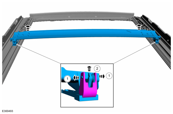 Ford Explorer: Панель проема крыши / Снятие и установка — желоб в сборе
