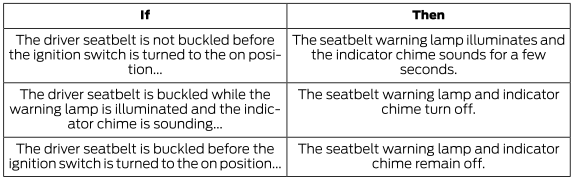 Ford Explorer: ремни безопасности / сигнальная лампа ремня безопасности и звуковой сигнал