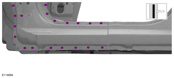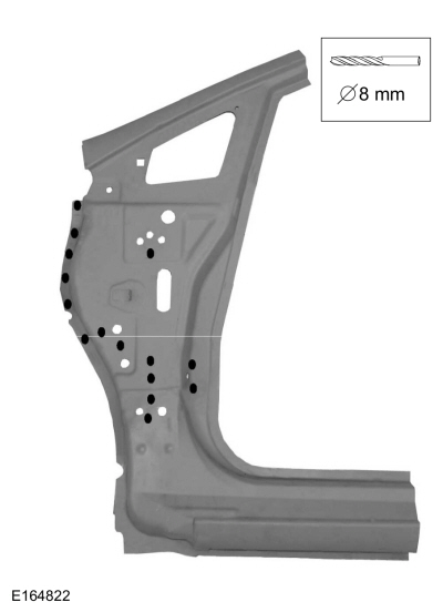 Просверлите отверстия для сварки заглушками в сменной внешней панели передней стойки.