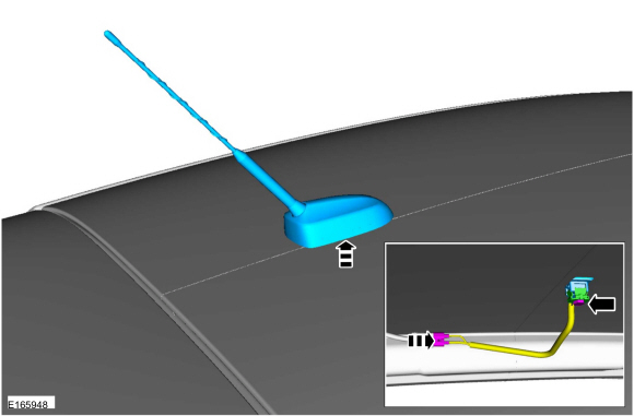 Снимите фиксатор, антенну аудиоблока и жгут проводов через отверстие в крыше.
