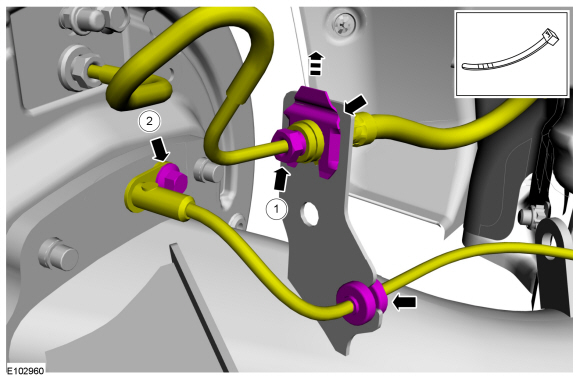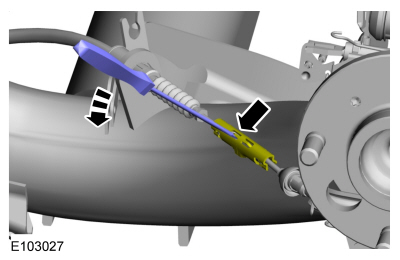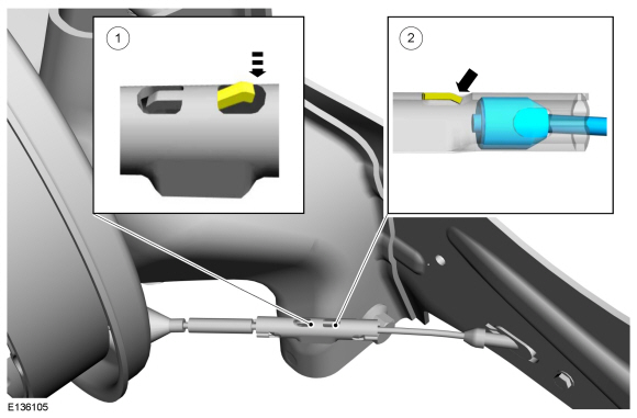 Поместите трос стояночного тормоза в монтажный кронштейн и зафиксируйте стопорный зажим.