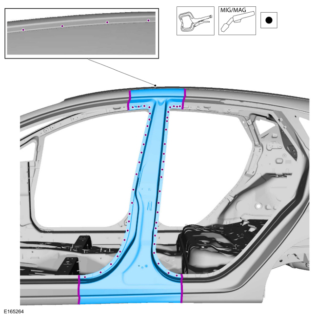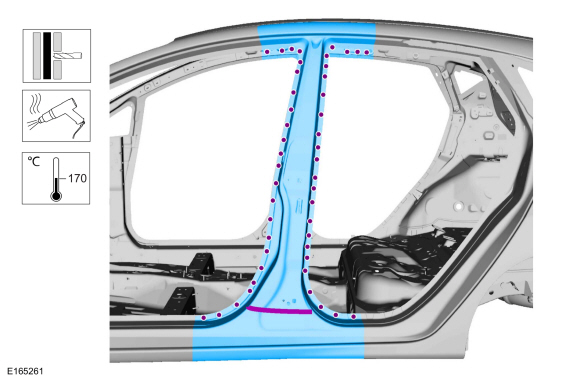 Ford Fiesta: Ремонт листового металла боковой панели / Наружная панель средней стойки. Снятие и установка