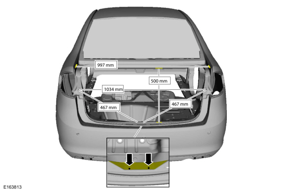 | 14 | Крышка багажника к задней панели (нижняя) | 6,0 мм (0,236 дюйма) ± 2,0 мм (0,078 дюйма) | — |